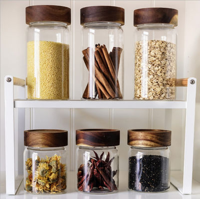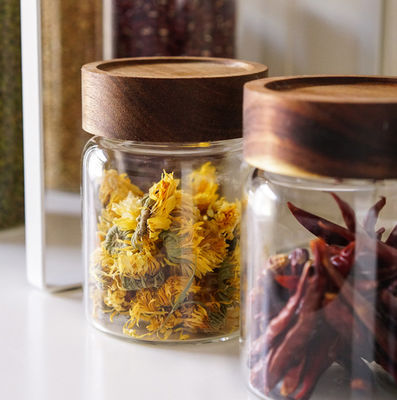 Gelas Kaca Atas Cakram Ramah Lingkungan Tutup Kayu Kosong Tabung Dapur Bening Toples Kaca Transparan
