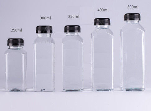 12oz BPA FREE French Square Plastic PET Juicer Bottle Untuk Botol Minuman Plastik Buah Jeruk
