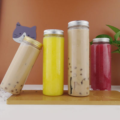 Minuman 450ml Botol Jus Boba Plastik Bulat Transparan dengan tutup aluminium